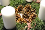 Sløjfer, kogler og andet skovpynt er mindst 15 år gammelt. Vi genbruger det hvert år og tingene har efterhånden fået sin helt egen historie. Det er dejligt 🙂
