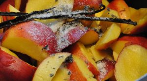 - Skyl abrikoserne, befri dem for sten og skær dem i små stykker. Kom dem i en skål, der tåler mikroovn. Jeg brugte en lille skål af glas. Tilsæt sukker, vaniljesukker og citronsaft. Start evt. med 30-40 gram sukker og smag til med mere undervejs.
