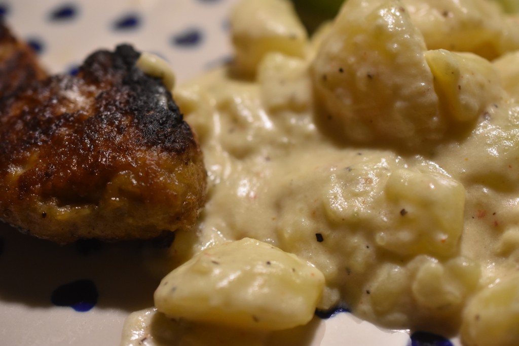 Lidt farve var måske det eneste vi savnede på flødekartoflerne. De ser lidt ferske ud. Men smagen….oh la la….. 🙂