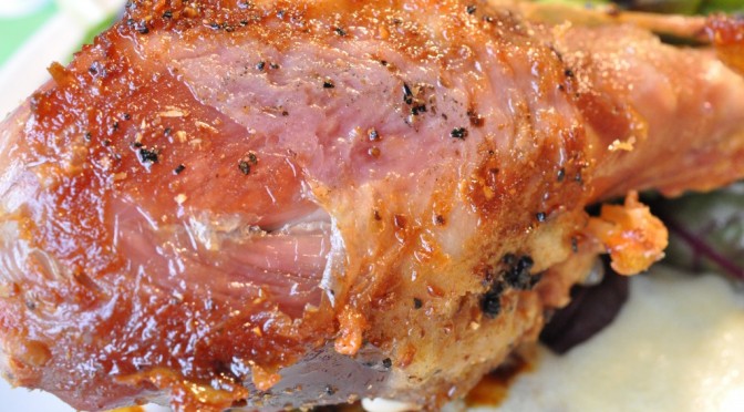 Sprøde kalkunlår med krydderi.