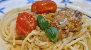 Mørbrad med pasta i tomat flødesovs - opskrift