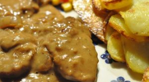 Lækre mørbradbøffer i flødesauce - med løg og peberfrugt