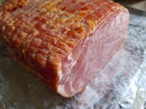 Det var en rigtig god og nem måde at tilberede hamburgerryggen på. Opskriften kan sagtens bruges til en røget skinke også, måske en lille bayonneskinke?