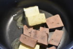 • Put smør og chokolade i en gryde og smelt det langsomt sammen ved middel varme.