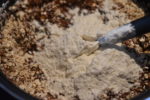 • Tilsæt havregryn. Bland hvedemelet med bagepulver og tilsæt. Rør dejen godt sammen