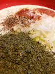- Fløde og ketchup blandes med persille, løg, paprika og peber