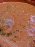 - Læg nakkestegen ovenpå og hæld fløde/tomatsauce ved. Kog panden af med lidt vand og tilsæt også stegeskyen. Har du en stor Römertopf, så kan al tomatsaucen måske være i din stegeso. Har du den lille model, som jeg, så kan du være nødt til at tilberede resten af tomatsaucen i en skål for sig. Tildæk skålen med staniol og sæt den i ovnen sammen med stegesoen.