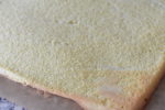 - Når bunden er færdig vendes den straks ud på sukkerpapiret med kagesiden nederst. Træk forsigtigt bagepapiret af. Hvis det ikke vil slippe, så vrid en klud med lidt vand og tør den henover bagepapiret