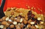 - Tilsæt herefter fyld efter smag. Dagens fyld blev et par gode håndfulde tørrede tranebær og et par håndfulde mandler. Rør dejen godt. Den bliver hård og fast.