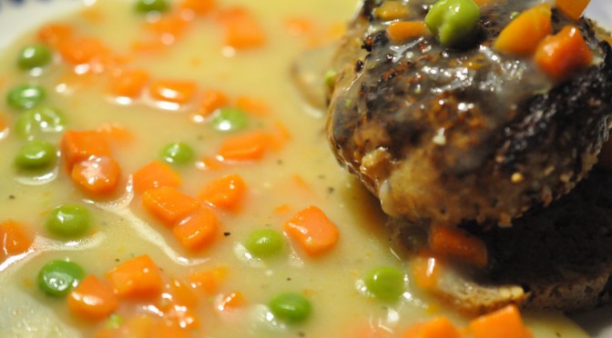 Krebinetter og stuvede ærter og gulerødder – nem populær mormormad