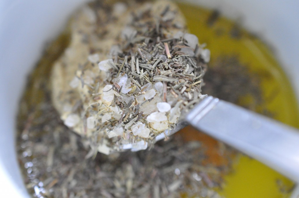 - 1 tsk tørret timian andre krydderurter kan bruges, også friske. Krydderier kan også udelades