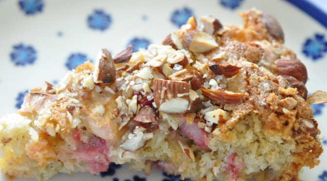 Rabarberkage med marcipan og kokosmel – nem opskrift på god kage med rabarber
