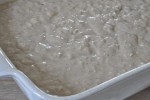 - Smør en bradepande eller et ildfast fad med smør og hæld dejen heri. Bradepanden skal være ca. 25x30 cm.