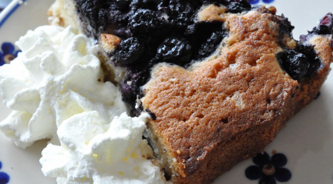 Blåbærtærten smagte rigtigt fint med flødeskum til – uhm, da den var nybagt var den helt knasende sprød i kanterne. Lækkert!