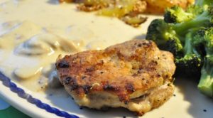 Onsdag: Panerede koteletter med champignonsovs og ris