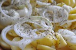 - Skræl løg og kartofler og skær i skiver