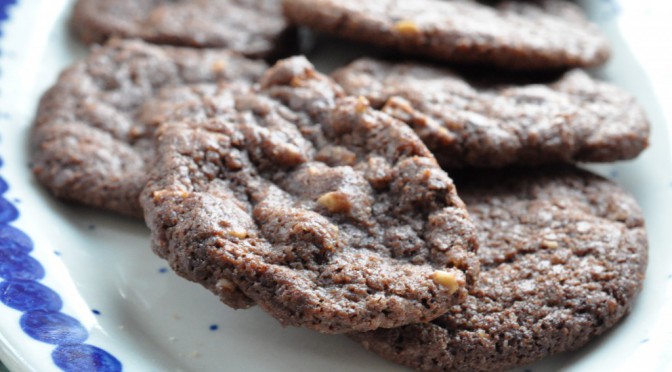 I dag skal du høre om et fad knasende sprøde småkager med chokolade og nødder – uhm en lækkerbisken. De bedste chokoladecookies!