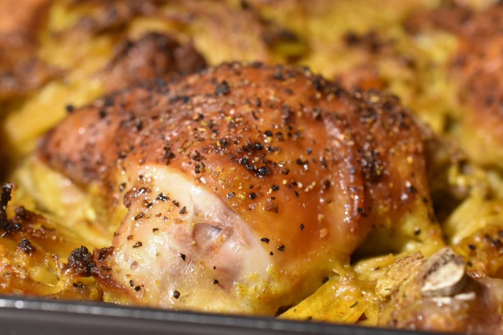 Kylling i fad med karry på nemmeste vis. Nem og lækker aftensmad. 🙂