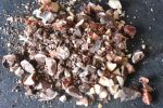 - Før servering, så hak brændte mandler og chokolade groft og drys på