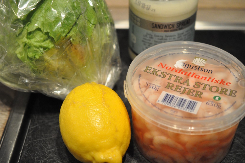 Så er der serveret. 1 stk. rejemad klar til dig. Haps! Sådan én kunne jeg altså godt sætte tænderne i nu! 🙂