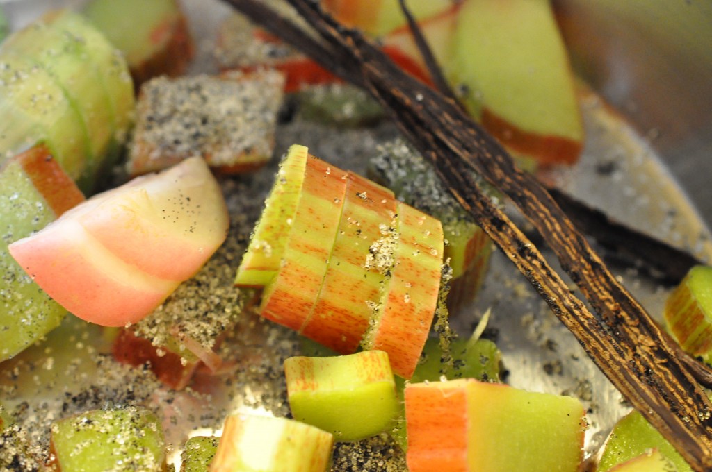 Vanillestangen “udmarvede” jeg og blandede med sukker. Et Mette Blomsterberg fif. Stænglerne kom også i til at give smag.