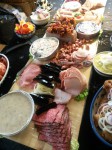 Slagtens pålægsplanke vakte igen jubel. Sikke en benovelse og sikke spændende det var at afprøve de lækre retter. Så fint slagteren – eller hans pålægsjomfru? – kan anrette pålægget.