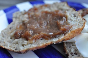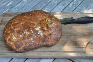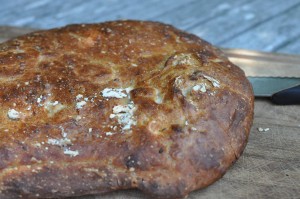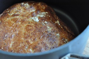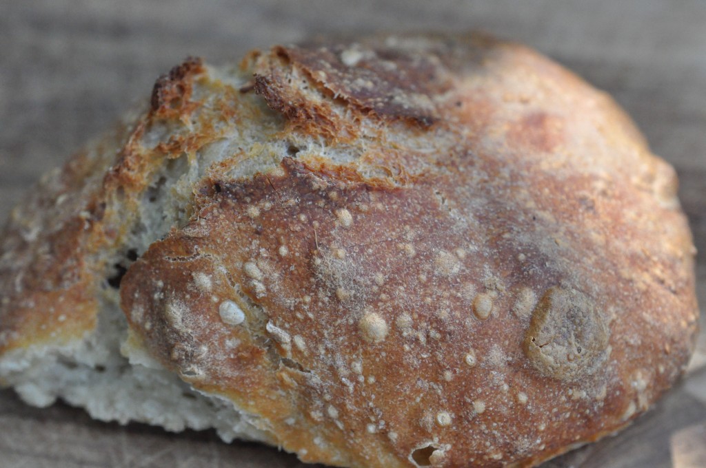 Jeg lavede et lillebitte grydebagt brød af en dejrest. Brødet blev bagt i en lille gryde og blev lidt mere fladt i det end normalt. Men knasende sprødt som et rigtigt grydebagt brød skal være. Jeg plejer at bruge min runde pyrolux-gryde, som giver brødet en rundere form, men min dejrest var ikke så stor, så jeg brugte en mindre og fladere gryde Opskriften på grydebagt brød kan ses her