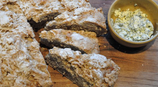 Brødet smagte fantastisk som madbrød til aftensmaden med hjemmelavet hvidløgssmør på