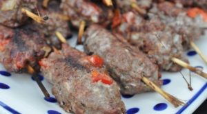 Grillede oksekødsruller med løg, hvidløg og peberfrugt