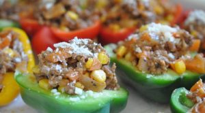 Fyldte peberfrugter med oksekød, majs og gulerødder