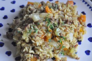 Kalkuncuvette i Römertopf med bulgur og grøntsager