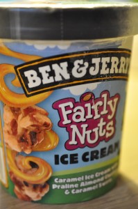 Jeg havde skumle bagtanker med de der brownie-muffins! I fryseren har vi en bøtte god Ben og Jerry’s is (fairy nuts. PRØV DEN!). Is, chokoladekage OG flødeskum, så er lykken gjort.