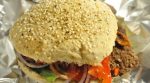 Form flade burgerboller, pensl med mælk og drys med sesam og salt/hvidløgspeber.