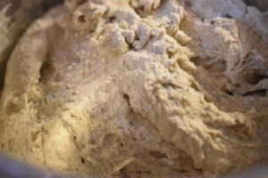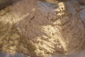 Tilsæt havregryn, rugmel og salt. Tilsæt melet lidt efter lidt og tilsæt kun lige mel nok til dejen kan slippe fad og fingre. Brug gerne røremaskine