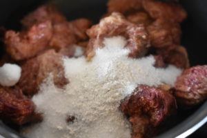 Tilsæt vaniljesukker og 30 gram sukker i første omgang,