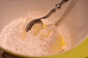 - 100 gram smør lunet 5 sekunder i mikroovnen