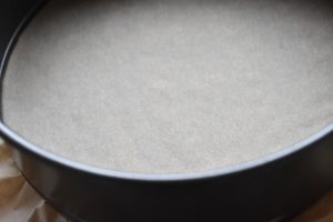 Når kagen er afkølet, kan du løsne den forsigtigt med en kniv. Du kan løsne hele kagen med en paletkniv og sætte den over på et serveringsfad. Du kan også trække bunden over, ved at hive i bagepapiret.