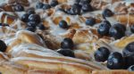Rør glasur og fordel glasurstriber henover kagen, når den er helt kold. Drys evt. med blåbær.